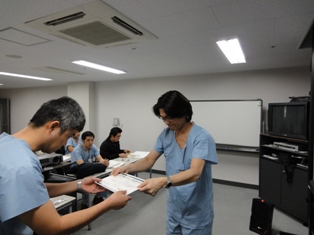 セミナー終了時には、日本内視鏡外科学会技術認定制度後援実技セミナー3点取得を証明するセミナー受講修了書が受講者全員に授与されました。