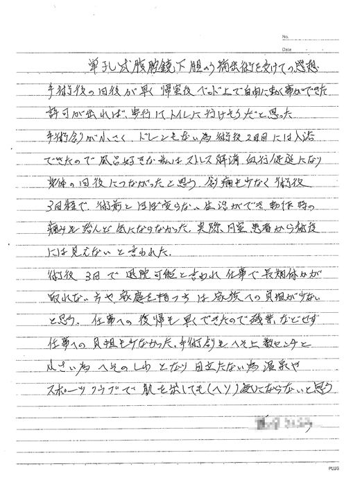 単孔式内視鏡手術(TANKO)ってこんな手術 (患者さんの体験談その1)